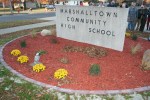Members of the Marshalltown High School Class of 1969 gathered Sunday to dedicate landscaping around the school’s two signs.