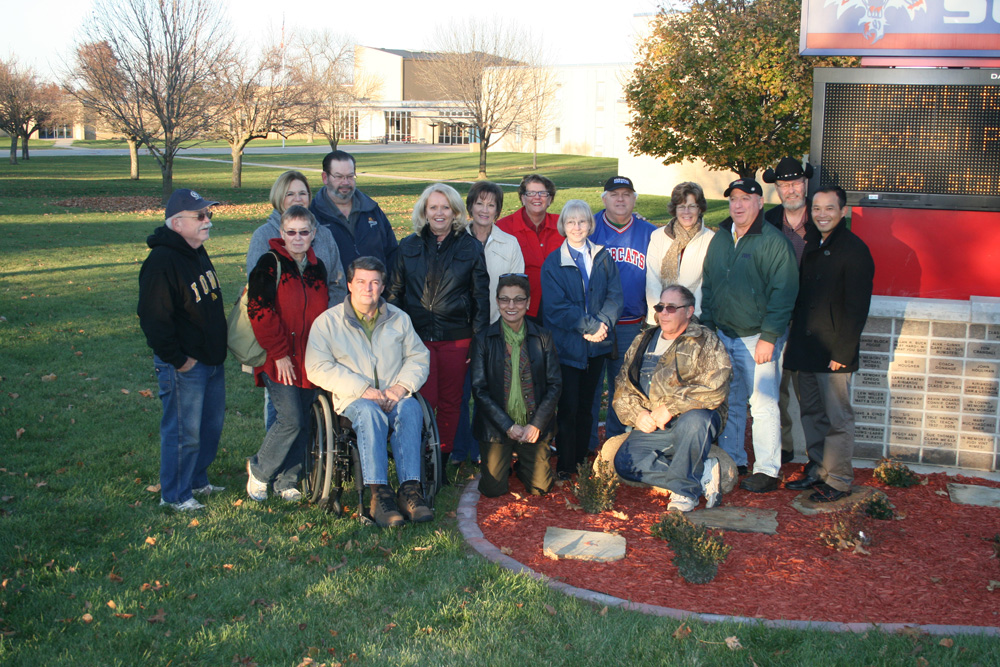 Members of the Marshalltown High School Class of 1969 gathered Sunday to dedicate landscaping around the school’s two signs.