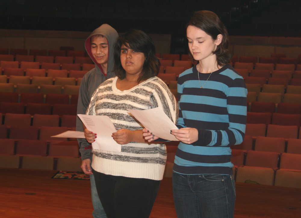 - L to R: Ryan McDaniel, Dayana Carrera and Andrea Lothe put their spin on one of the Poetry Out Loud poem selections.