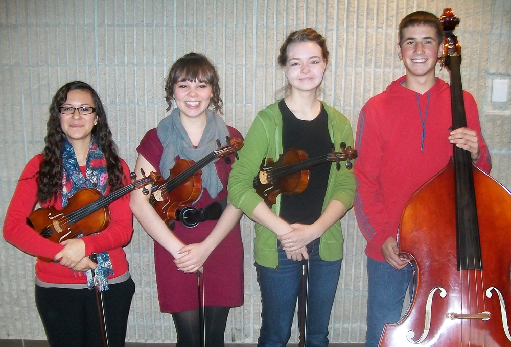 High School Honors Orchestra participants (L to R): Brenda Zavala Livengood, Grace Franck, Olivia Hawkins, Joseph Metzger.