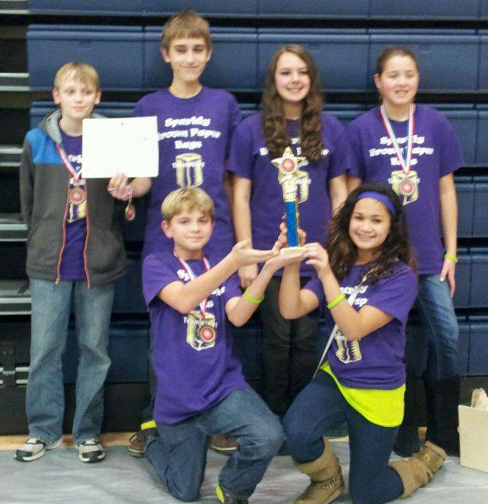 Team “Sparkly Brown Paper Bags” (Front L to R): Nick Summers and Mary Drummer. Back: Ethan Thill, Jared Rice, Juliana Osgood, and Whitney Canaday.