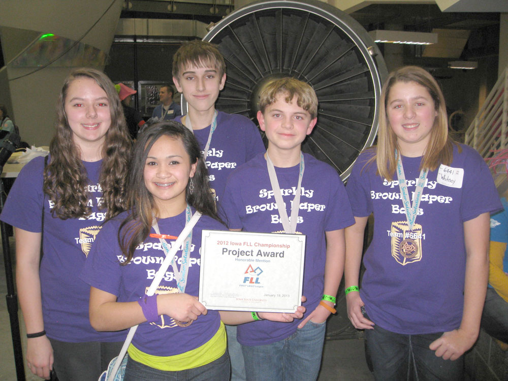 The 8th grade FIRST LEGO League (FLL) team from Miller Middle School placed third in the Project Award category at the State FLL competition Saturday, Jan. 19, at Iowa State University.
