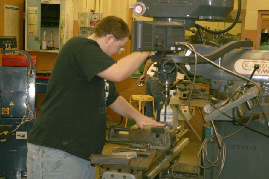 Casey Jenkins works on PET components in Machine Metals class.