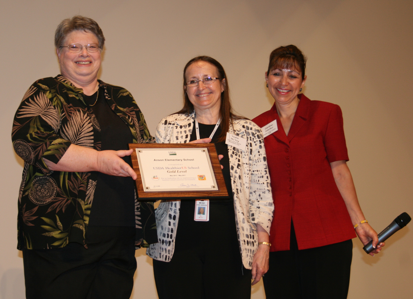 Principal Bea Niblock, Food Services Director Vickie McVey and USDA official Darlene Sanchez.