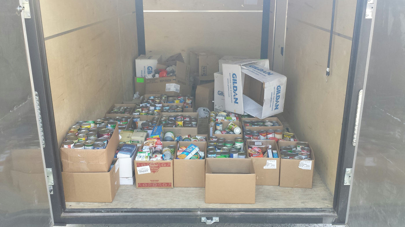Members of the Marshalltown High School Football Team dropped off nearly 1,000 non-perishable food items at the Emergency Food Box today, all of it proceeds from the Blue /White Classic Football Scrimmage held last Friday, Aug. 23.