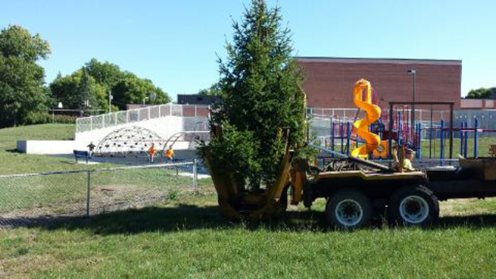 Lonnie Hogeland and his son planted an evergreen tree in front of Hogeland Auto Plaza before Lonnie Jr. passed away in 1998. A few weeks ago the tree found a new home at a place once familiar to Lonnie Jr. – Fisher Elementary.
