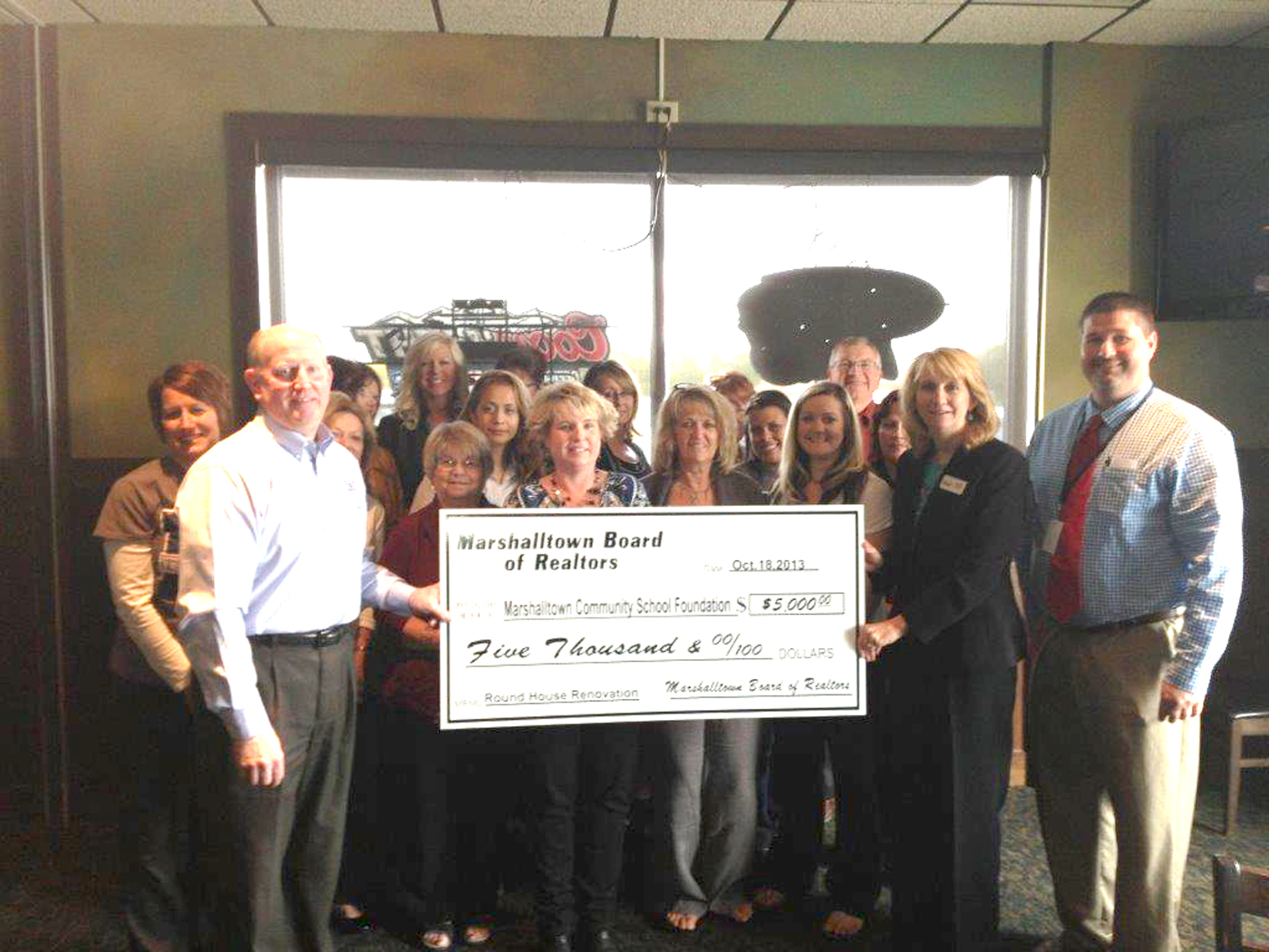 RealtorsThe Marshalltown Board of Realtors donated $5,000 toward the Marshalltown High School Roundhouse renovation Friday, Oct. 18.