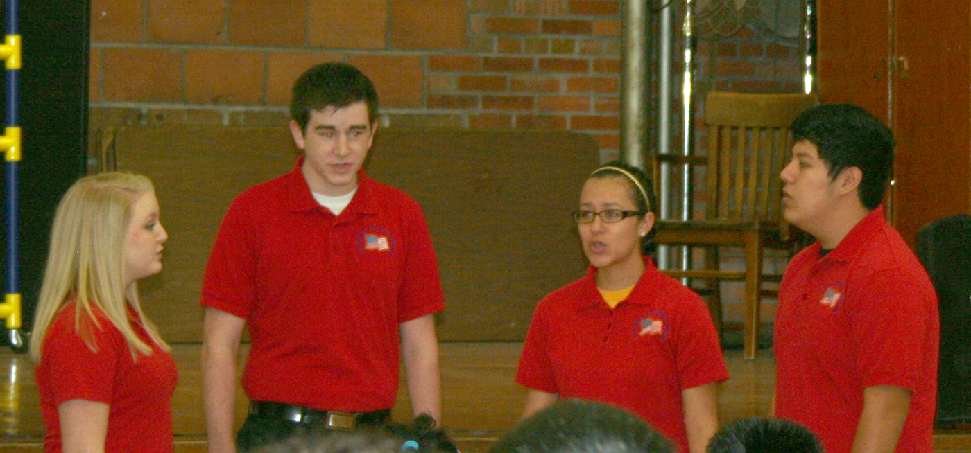 Members of the MHS National Anthem Singers open the celebration at Woodbury Elementary.