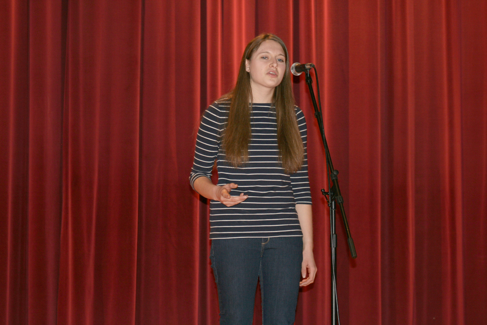 Ellen Podhajsky placed fifth in the state’s annual Poetry Out Loud contest March 16 at the State Historical Building in Des Moines.