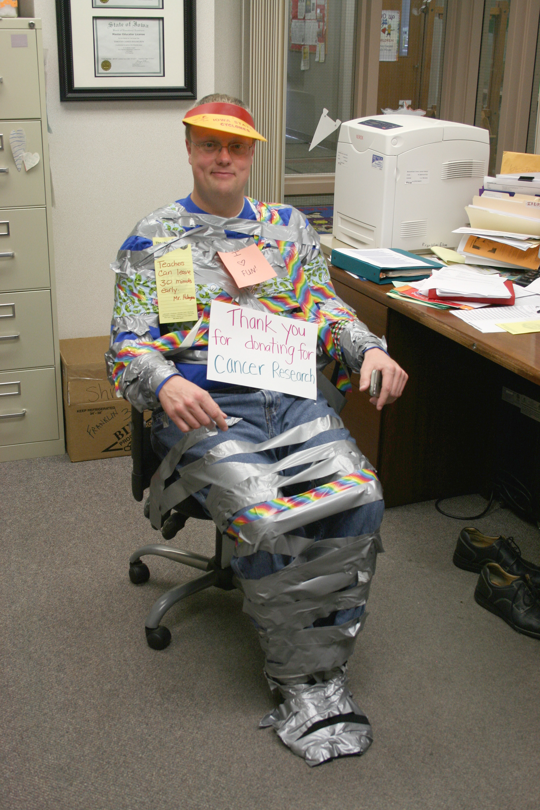 Holmgren took it to another level Wednesday as he let students duct tape him to his chair throughout the afternoon.