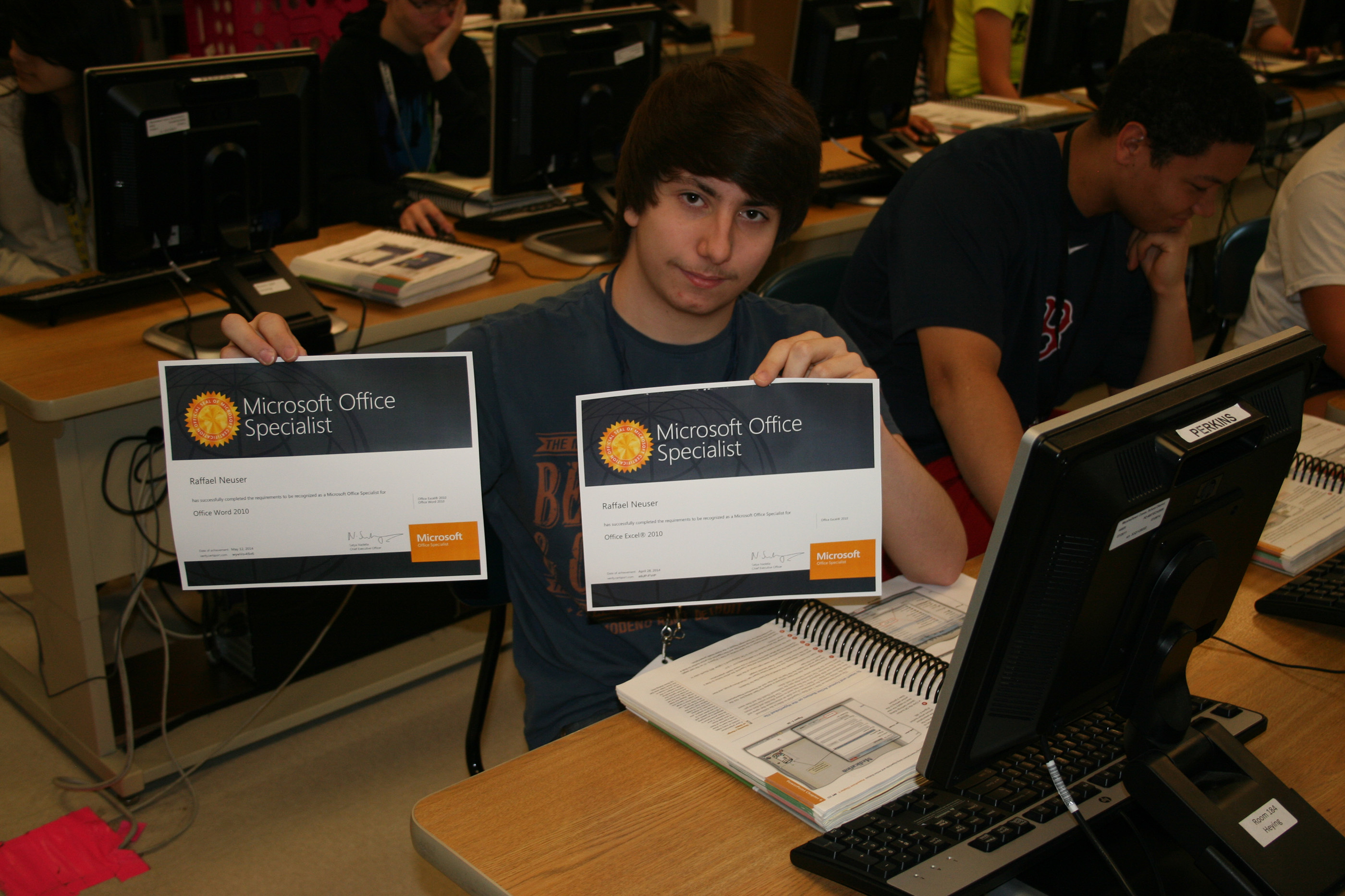MOS certification is available on all Microsoft Office products. Nueser earned his certification in Word, PowerPoint and Excel while in Ann Heying’s Advanced Word Processing course. Other students in Heying’s class are working on IT Academy as well and hope to earn certifications soon.