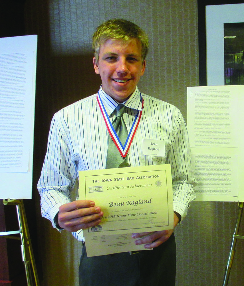 Marshalltown High School junior Beau Ragland recently was a state finalist in the Know Your Constitution contest.