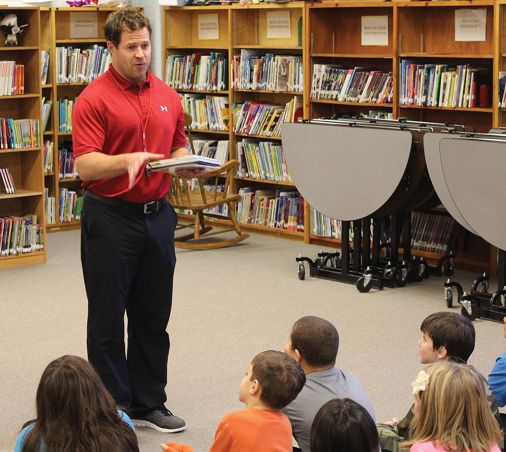 Children’s author and former Iowa State Cyclone football player Ryan Sloth talked to students at Rogers Elementary School on Jan. 13.