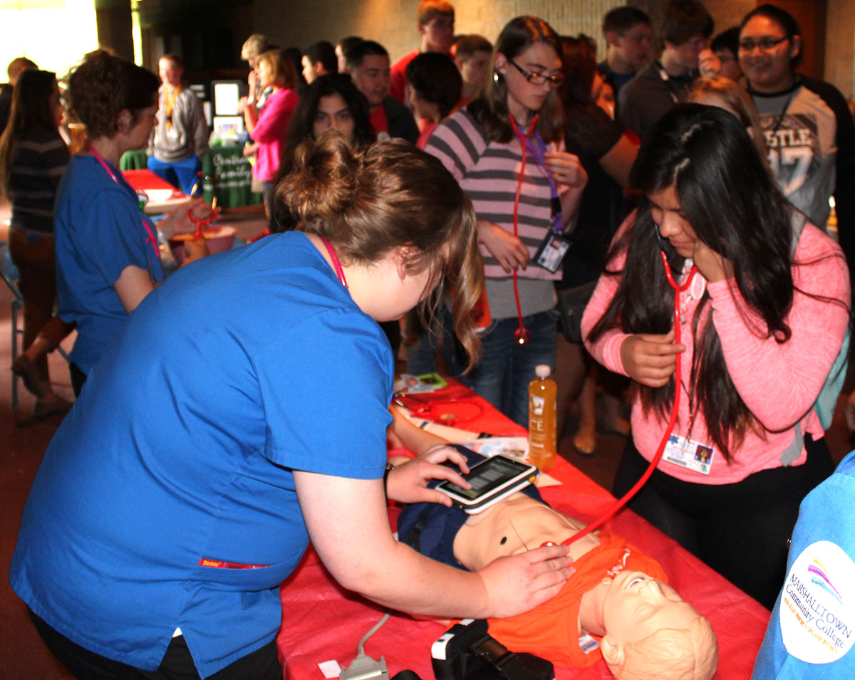 The Marshalltown Community College nursing program brought a mannequin to the Marshalltown High School health fair on May 6.