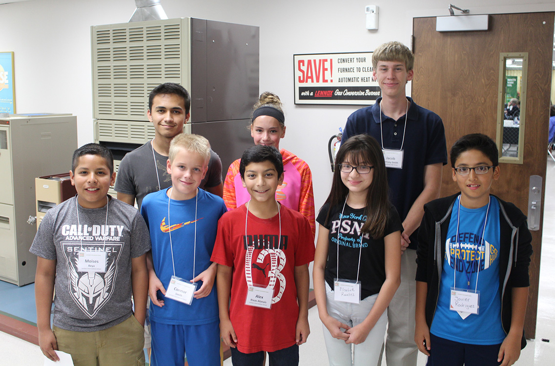 This group of Marshalltown Schools students talked about STEM projects during a Governor’s STEM Advisory Council meeting Sept. 15 at Lennox Industries in Marshalltown. Pictured front row, from left, Moises Raya, Conner Smith, Alex Rivas-Alanis, Elisabeth Ramirez and Javier Rodriguez. Back row, Ryan McDaniel, Regan Smith and Jacob Ramsey-Smith.