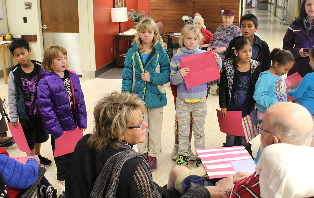Several students from an after school program at Rogers Elementary School delivered Veterans Day cards to veterans at the Iowa Veterans Home on Nov. 11.
