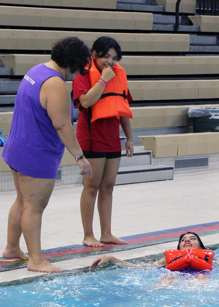 During “Reach Out and Throw, Don’t Go,” students were taught what to do if they see a person drowning or struggling to swim in deep water. They learned to always tell an adult right away, and the instructor stressed the importance of not jumping into the water after another person.