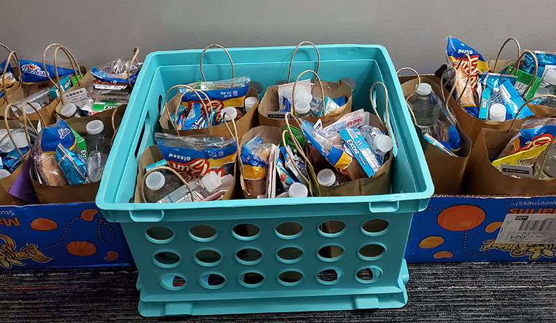 After brainstorming, the students voted to purchase several food and household items to give to those in need through the Salvation Army. The items, which were stuffed into the student-decorated goodie bags, included bottled water, bandages, wipes, hand sanitizer, toothbrushes, toothpaste, granola bars, candy, and other food items.