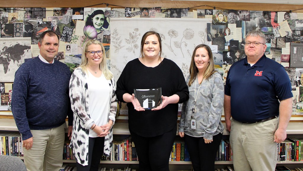 Woodbury Elementary school resource specialist Samantha Baedke, Marshalltown High School Food Service staff member Deb Corrick, Lenihan Intermediate School fifth grade literacy teacher Alex Klyn, and Marshalltown Learning Academy English teacher Katie Mummert were chosen for the honor after being nominated by their peers.