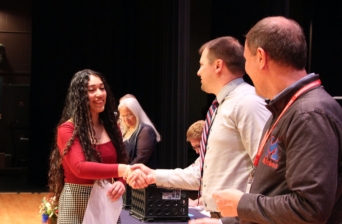 Rochelle Avalos: U of I Advantage Iowa Award – $5k; U of I Need-Based Academic Award – $6k; U of I Scholars Award – $1k; Foster O. Blake Memorial Scholarship – $1,700; Rose and Harry Druker Memorial Scholarship – $2k; Members 1st Credit Union – $1k; Phyllis Perry Hulton Scholarship – $1,100; Americorps – $1,342; Gwendolyn & Lucian Hinecker Scholarship – $4k; UnityPoint Health Auxiliary Scholarship – $2k; Marshalltown Education Partnership Scholarship – $3,118; Red Cord (Life Serve Donor of Distinction); Seal of Biliteracy; Silver Cord; MVP Medallion, Bobcat Ready