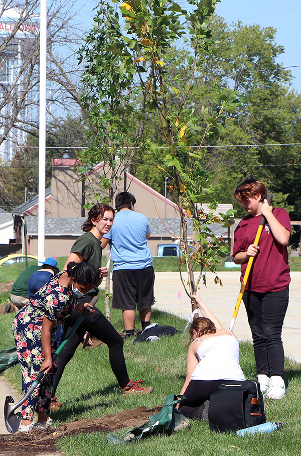 The Marshalltown Planting Hope project kicked off with a planting event on the west lawn of MHS on Monday afternoon. In all, 114 new trees will find a home at MHS, Marshalltown Learning Academy, Miller Middle School, Rogers Elementary School, or Hoglan Elementary School this week.