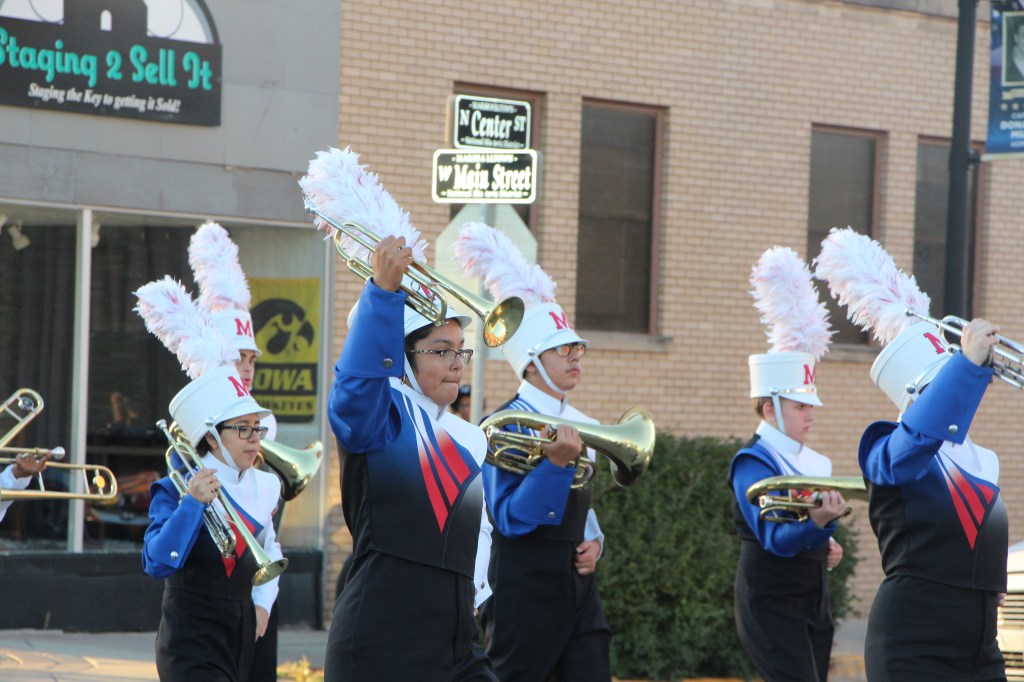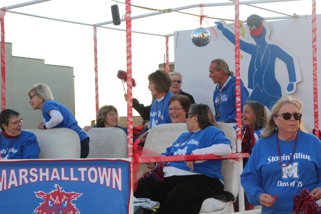 Earlier Thursday evening, the entire Homecoming Court helped ramp up Bobcat Spirit in Marshalltown during the annual MHS Homecoming Parade down Main Street. Also featured in the parade were students from the MHS Football, Marching Band, Color Guard, Bowling, Golf, and Cheer programs, among others. Several high school clubs also featured, as did a float from Marshalltown Learning Academy.