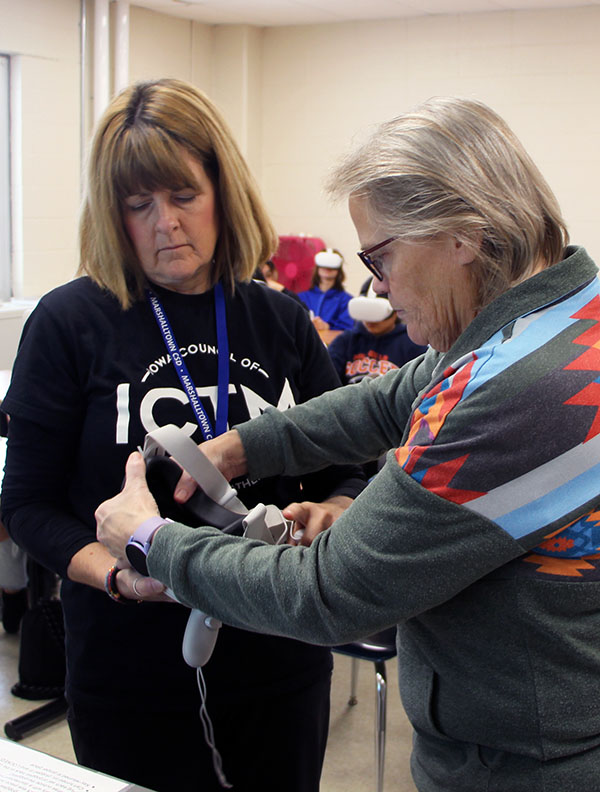 Iowa Council of Teachers of Mathematics (ICTM) President Angie Shindelar got a first-hand look at the cutting-edge PRISMS virtual reality platform at Marshalltown High School on Friday.